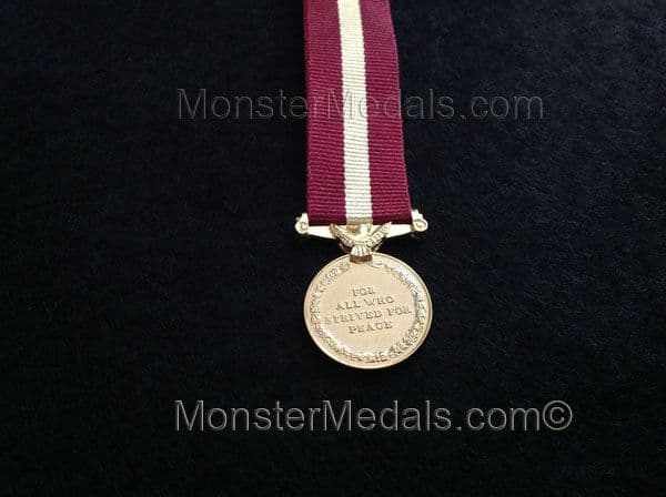 MINIATURE RESTORATION OF PEACE COMMEMORATIVE MEDAL WITH RIBBON.